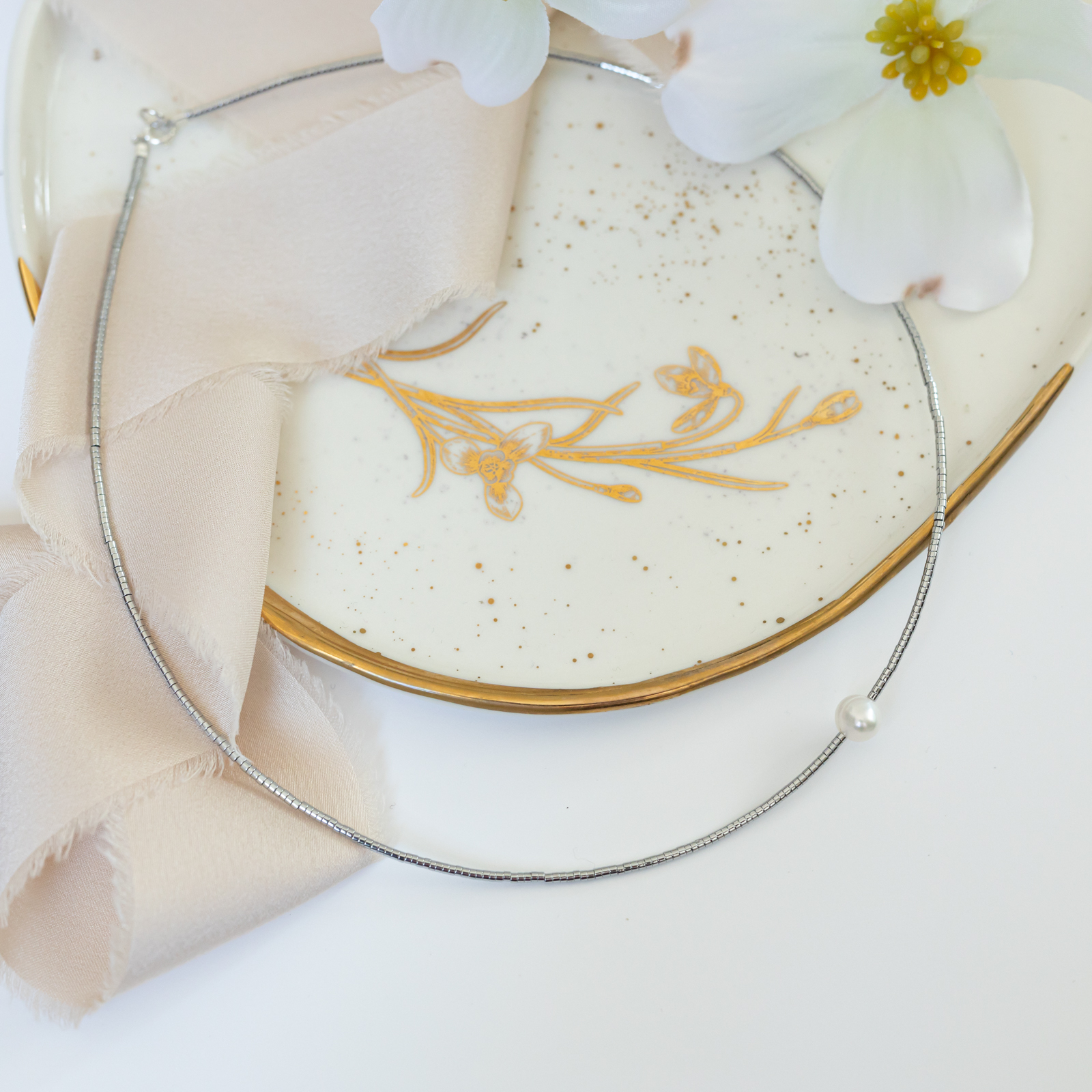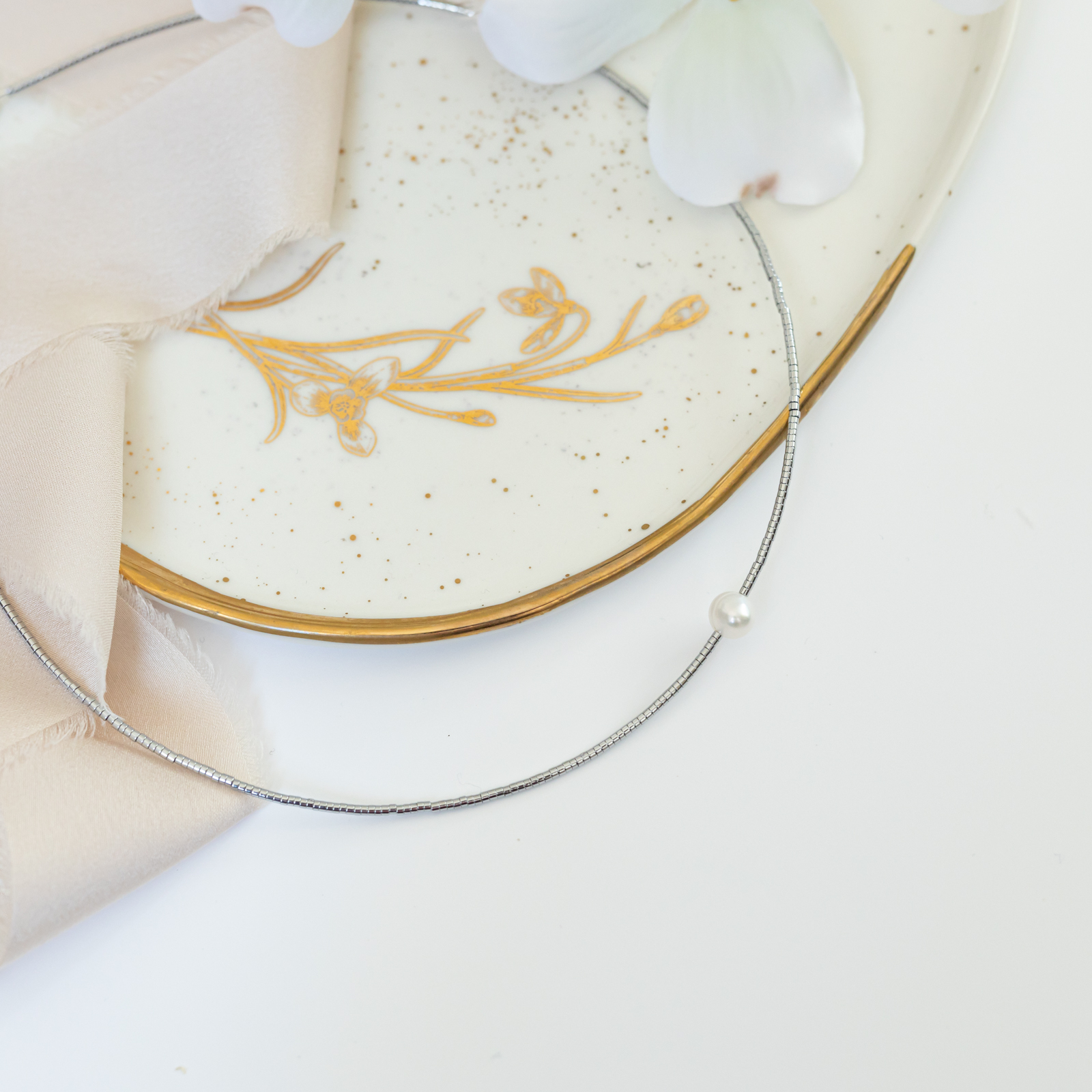 Produs realizat din pietre semipretioase hematit, perla de cultura, accesorii argint925